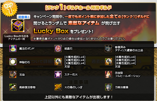 今回のメンテでギルドホール争奪戦のプレゼントが届いてました。