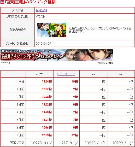 ←にリンクを張っているレッドストーンブログランキングの順位も一緒に。