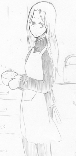 上の絵は風邪ひいた蔦兄のためにおかゆを作る針です。